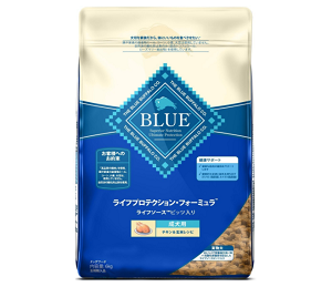 ブルーには、ブルーバッファロー社によって独自開発された「ライフソースビッツ(焦げ茶色の小さな粒で抗酸化栄養素)」が配合されていて、愛犬の健康に欠かせない栄養素をもれなく摂取できるドッグフードです。