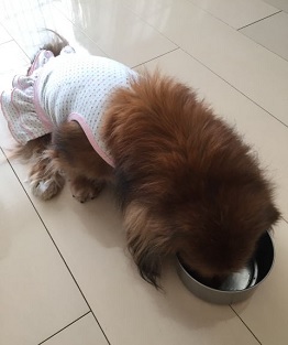 15歳と高齢のエリザちゃんですが、まだまだ元気で毛並みもいいですね。シニア用のナチュラルチョイス小型犬エイジングケアのドッグフードが合っていて、元気の源になっているようですね。