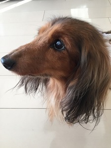 ワンちゃんの名前のエリザベスは、生まれた時に他のダックスの中で、一番高貴で上品な顔をしていたからです。普段はエリザと呼んでいます。