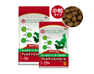 ウェルケアは、そんな食物アレルギー対策として作られているドッグフードで、成長段階や犬種に分けて、いろいろな種類のアレルギー対策ドッグフードが販売されている商品です。